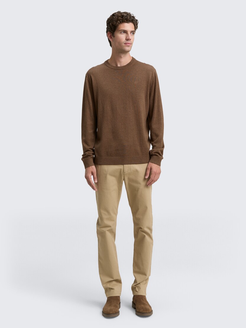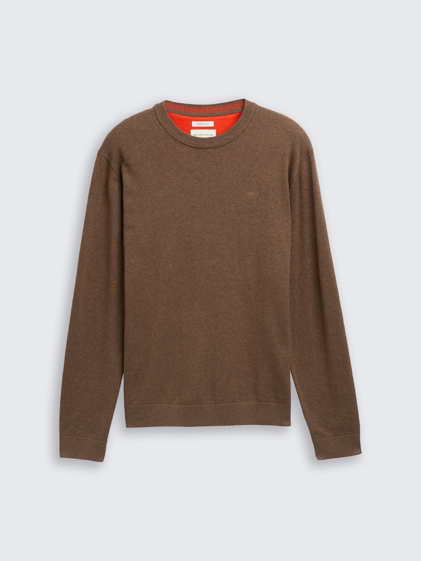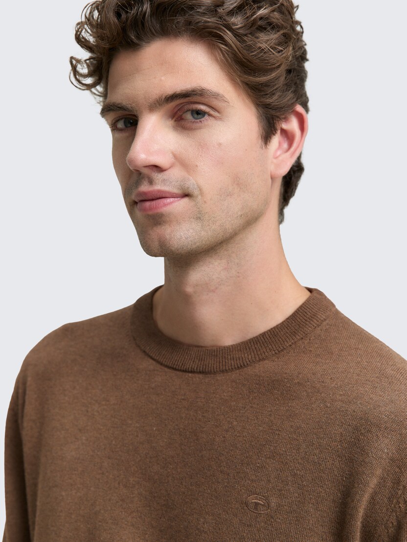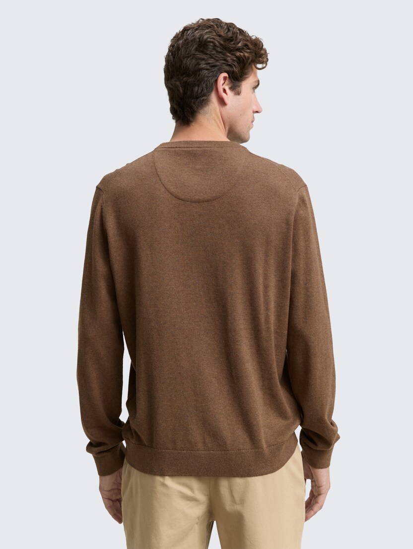 Pulover tricotat cu guler rotund - Maro