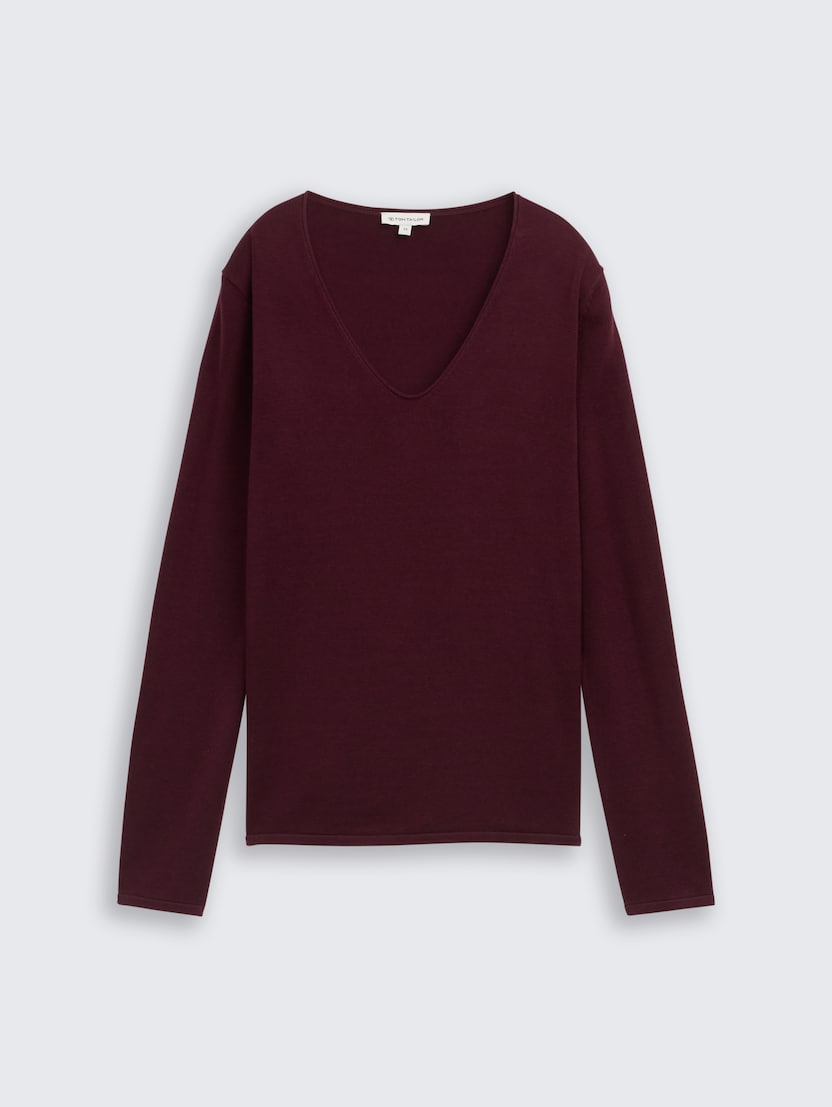 Pleteni džemper sa V-izrezom - Crvena